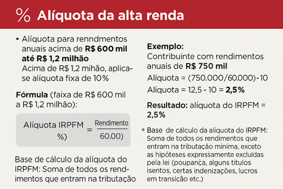 Essa retenção é considerada antecipação da futura tributação mínima anual da alta renda (IRPFM). Não é um tributo isolado: entra na conta do ajuste anual do contribuinte.